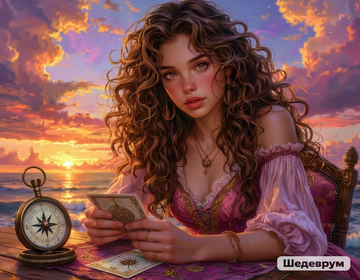 Я же, опишу своё стандартное видение-трактовку. Если почувствуете, что где-то внутри мой текст "откликается" , то так тому и быть. Если ощутите отторжение информации, то прислушивайтесь только к себе🙌. На этой метафорической карте: перо парит над сухой землёй, с него течёт голубой ручей чернил, рядом сияет солнце и лежит компас. Перо - знак, мысль и вдохновение, ручей - жизнь, чувства и восстановление, солнце - ясность и энергия, компас - верный курс и выбор пути. День предвещает выход из внутренней засухи (застоя): подсказка придёт и поможет понять, куда двигаться дальше. Утром - начни день спокойно, вдохни свежий воздух, выбери жёлтый, белый или голубой цвет. Днём - благоприятно принимать решения о дальнейшей жизни, планировать по