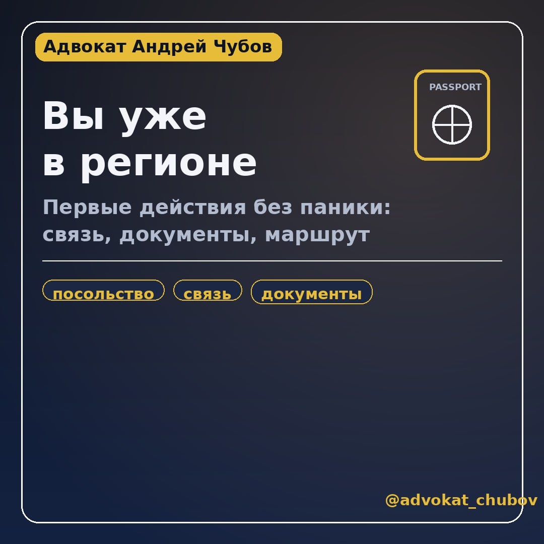Что делать в первую очередь Когда человек уже находится в регионе, задача меняется. Здесь уже не про красивые юридические формулировки, а про безопасность и фиксацию обстоятельств. Первое — не принимать решений вслепую. Нужно проверить сообщения местных властей, авиакомпании, туроператора и российских дипломатических представительств. Российские власти отдельно рекомендуют тем, кто находится в странах региона, соблюдать указания местных властей и поддерживать связь с туроператорами и дипломатическими учреждениями. Второе — сохранить связь и маршрут. Зарядить телефоны, подготовить офлайн-копии документов, записать контакты посольства, консульства, туроператора, страховой компании и близких. Не держать всё в одном приложении и не рассчитывать, что интернет будет всегда. Третье — не терять доказательства расходов и изменений. Если вы вынужденно продлеваете проживание, покупаете новый билет, переносите трансфер, оплачиваете связь или транспорт — сохраняйте чеки, скриншоты, посадочные,