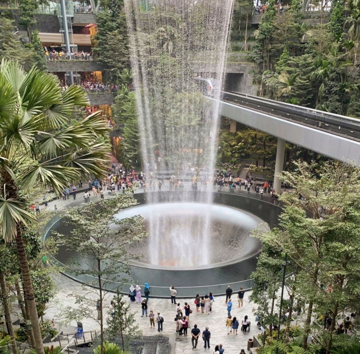 Главная причина — атмосфера. Когда перед тобой огромный крытый сад с водопадом, мостами, стеклом и многоуровневым пространством, это воспринимается как отдельная туристическая точка. Такое редко бывает с аэропортами вообще.