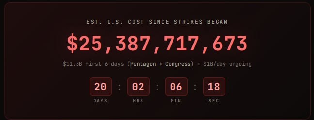 Общая стоимость операции США против Ирана уже превысила 25 миллиардов долларов, сообщает портал Iran War Cost Tracker