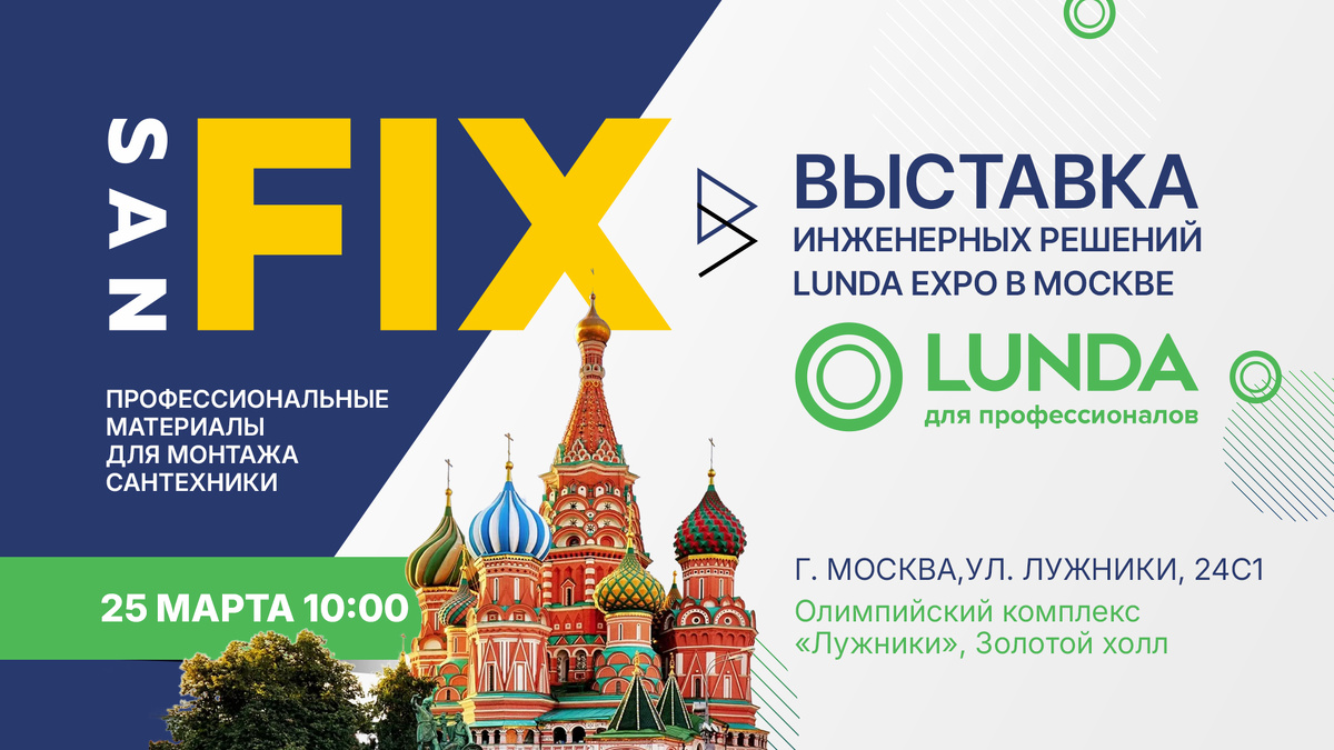 👷♂️ Всем привет, друзья! Команда SANFIX рада пригласить всех монтажников и специалистов строительно-инженерной сферы на главное отраслевое событие — LUNDA EXPO Москва! 🏗️ 📍 Место встречи: г. Москва, ул. Лужники, 24с1 (олимпийский комплекс «Лужники», Золотой холл)