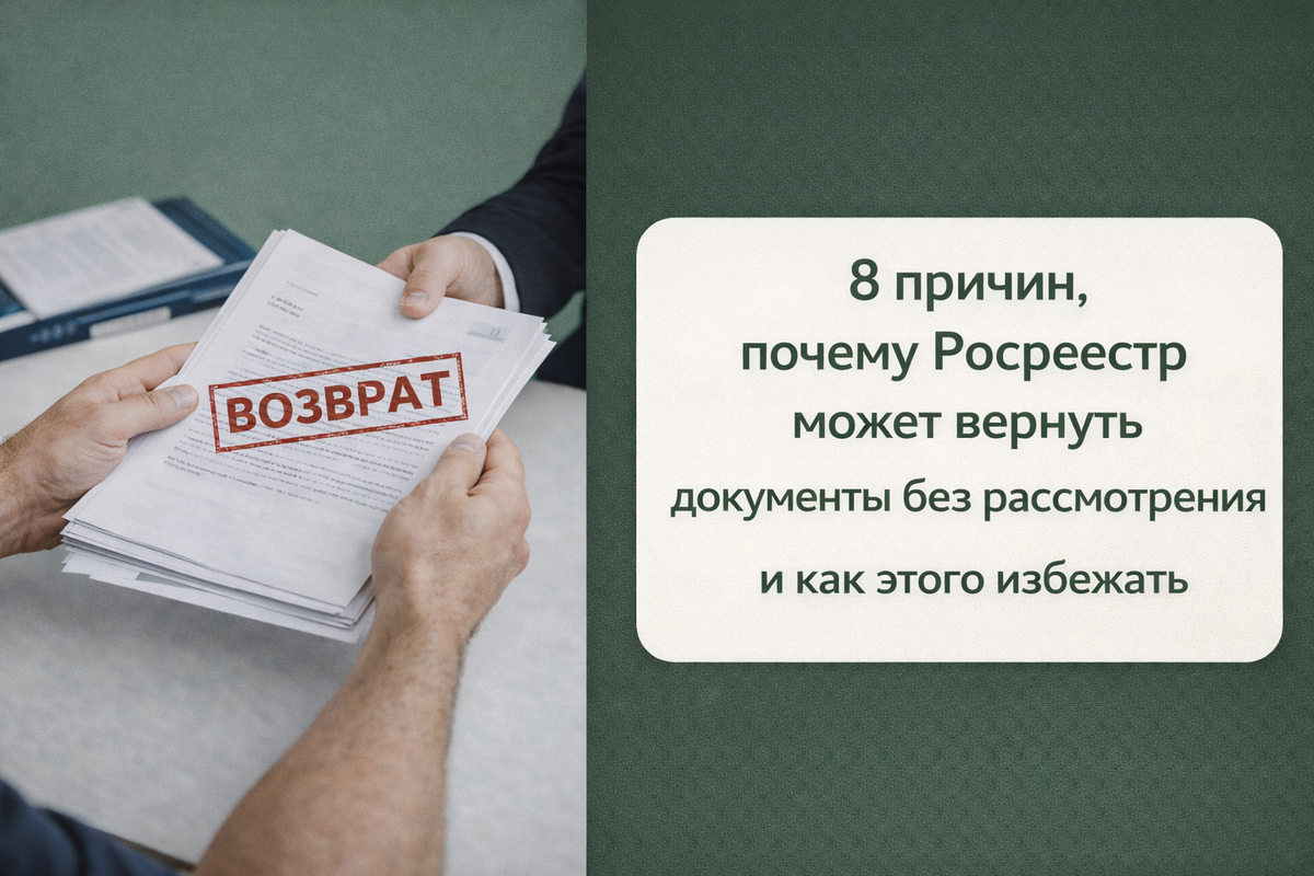 Подали документы на регистрацию права и получили ответ: "документы возвращены без рассмотрения". Что это значит и что дальше делать? Для тысяч людей каждый год возврат документов без рассмотрения становится пренеприятнейшим сюрпризом. Но хорошая новость в том, что почти всех этих проблем можно избежать, если знать, на что Росреестр смотрит в первую очередь. Рассмотрим 8 причин, по которым Росреестр может вернуть ваши документы, как избежать возврата, и что делать, если документы все-таки вернули. Для начала давайте определимся с понятиями. Когда Росреестр возвращает документы без рассмотрения, это еще не отказ. Это как если бы вы пришли в ресторан... При отказе вам говорят: "вы хотите заказать борщ, но его у нас нет". При возврате: "вы хотите заказать, но ваш бланк заполнен непонятно, перепишите и приходите снова". Самое важное отличие: при возврате госпошлина не сгорает. Вы можете подать снова, и уплаченные деньги пойдут в зачет. По статистике, большинство возвратов случается именно