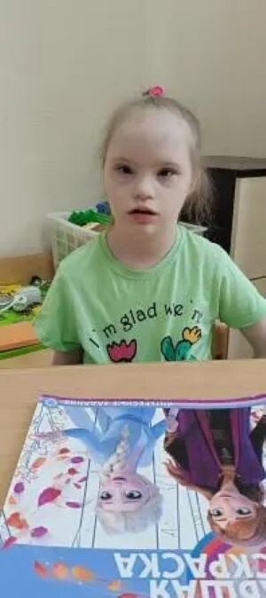 "Ты не ошибка, милая малышка, ты предназначена именно для нас, и мы с папой так благодарны, что нашли тебя. Ты наполнишь наши сердца гордостью и любовью." Мы надеемся, что Сашенька вскоре услышит именно такие слова. Иметь особенного ребенка - это как получить секретный код к очень важной истине: что каждый человек имеет ценность, не зависимо от того, как он выглядят или что умеет. Саша достойна жить такой, какая она есть. Это милая, радостная, упрямая и невероятно весёлая малышка с дополнительной хромосомой. Девочка контактная, общается со сверстниками и взрослыми на доступном для нее уровне, испытывает положительные эмоции в окружении других детей и взрослых. В силу интеллектуального дефекта необходима постоянная помощь взрослого, доступны для понимания только элементарные действия, выполняет требование взрослого Саша стала более подвижной и самостоятельной. Принимает участие во всех мероприятиях учреждения. 5-ая группа здоровья. Возможные формы устройства усыновление, опека: вступивш