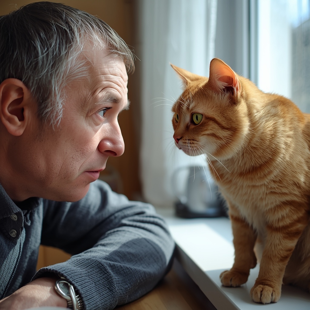 Но кошка смотрит иначе. В её взгляде нет ни осуждения, ни восхищения. Там вообще нет оценки в привычном смысле. Она просто смотрит на вас и видит вас — настоящего, без прикрас и объяснений. Такого, какой вы есть в эту минуту. И вот это ощущение — что тебя видят по-настоящему — и есть самое странное и самое точное из всего, что я могу сказать про этот взгляд.
