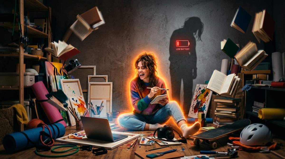 Она влетает в кабинет как комета, оставляя за собой шлейф из идей, планов и горящих глаз. Ей чуть меньше тридцати, и кажется, что её энергии хватит на запуск космического корабля. Но за этим ярким фасадом скрывается ловушка: она просто не умеет нажимать на тормоз. Моя клиентка Алина - классический пример «человека-факела». Она находит новую зону интереса и ныряет туда с головой, забывая про сон, еду и близких. Проблема в том, что такие факелы сгорают дотла удивительно быстро. Ловушка дофаминового восторга Когда Алина загорается новой идеей, её мозг вырабатывает дофамин в промышленных масштабах. В этот момент она чувствует себя всемогущей. Она может работать 20 часов в сутки, не чувствуя усталости. Беда в том, что у неё отсутствует внутренний регулятор. В подобных ситуациях многие чувствуют легкое утомление и замедляются, Алина же игнорирует сигналы тела, пока буквально не падает в обморок. Для неё «интересно» - это единственный легитимный повод тратить ресурс. Она вкладывает всё до пос