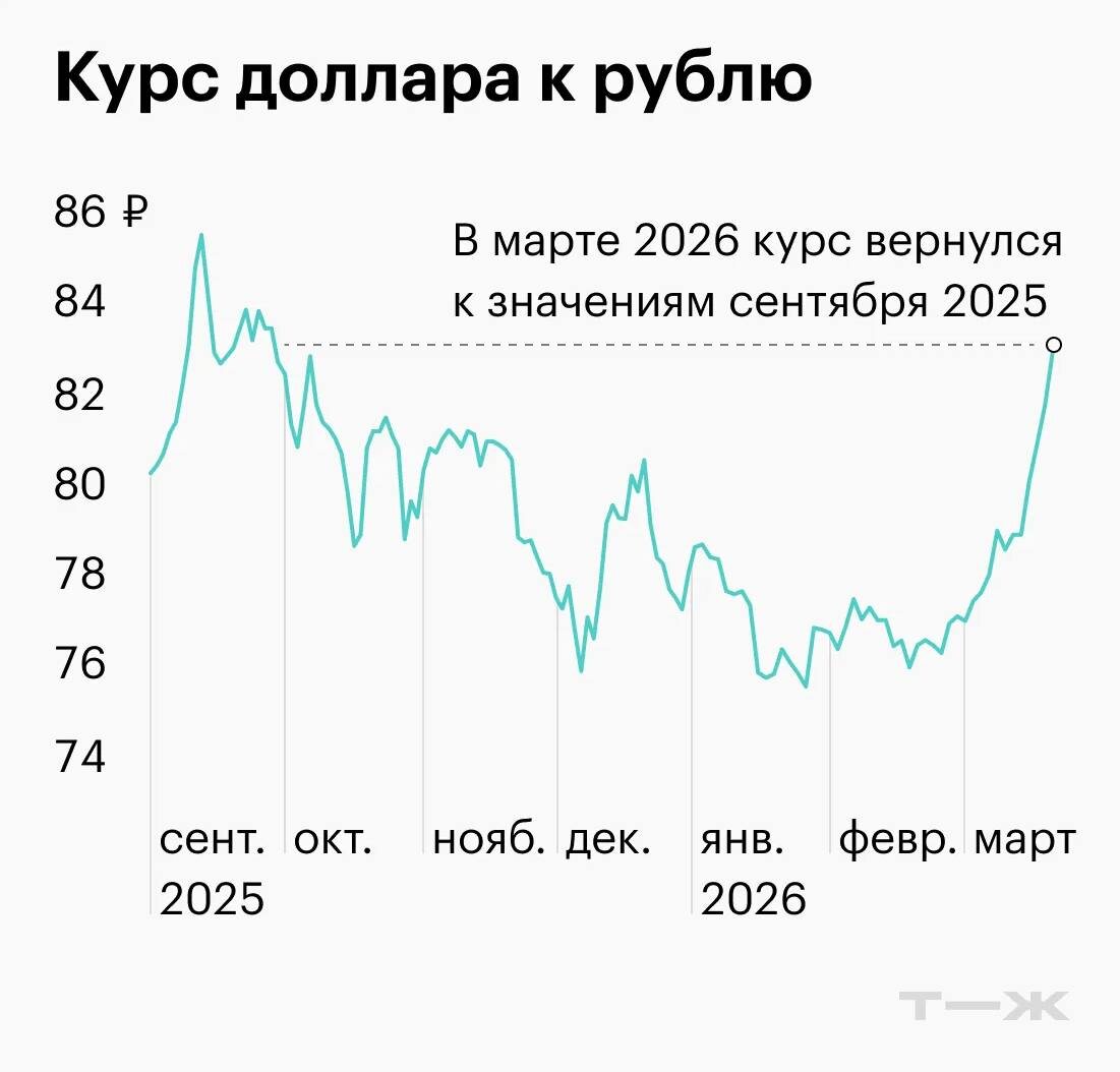 С 13 по 19 марта доллар подорожал на 4 ₽, с середины февраля — уже на 7 ₽. Почему рубль слабеет и какого курса ждать к концу года: https://t-j.ru/tg/kuda-poshel-ruble/
