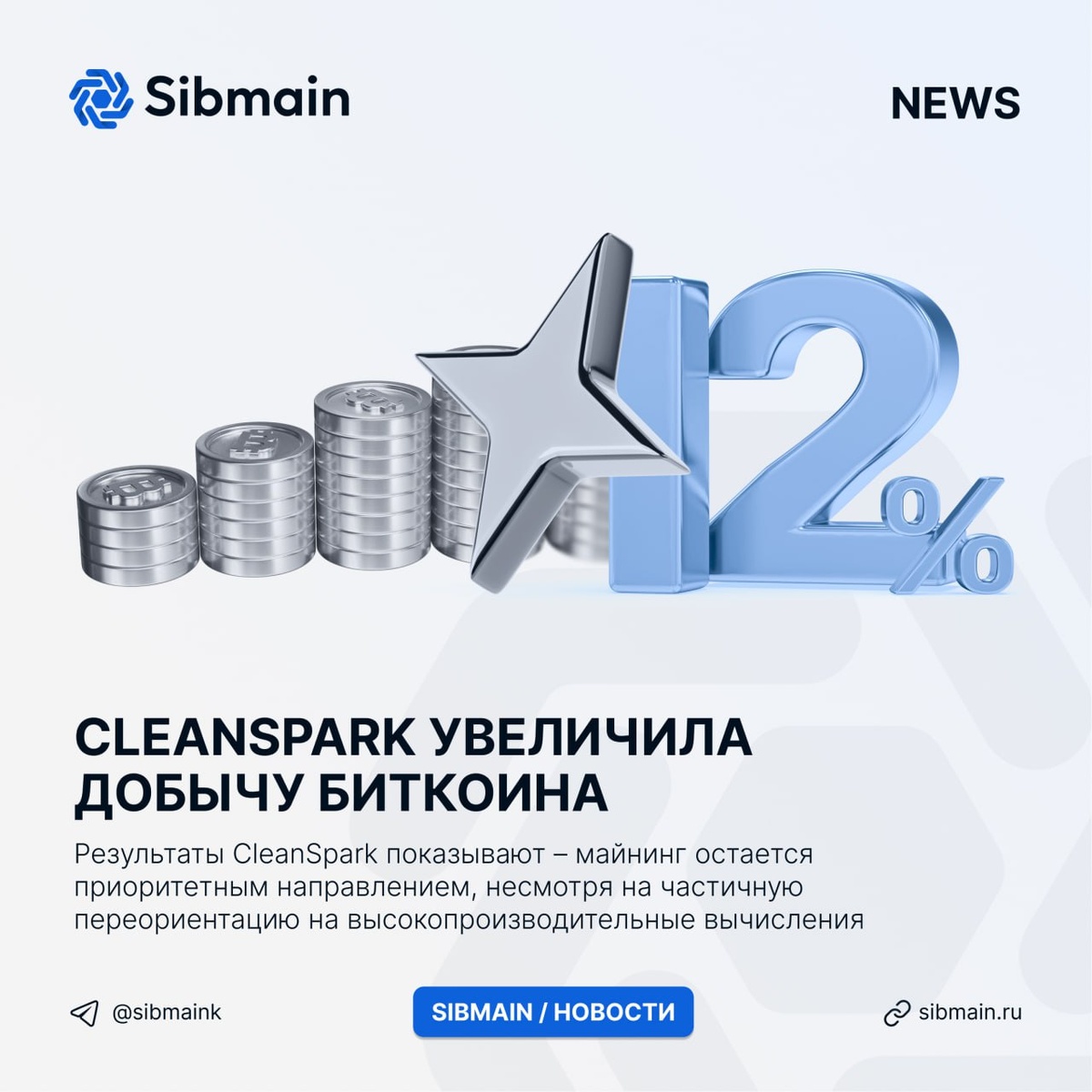📰📰📰📰 ➡️CleanSpark увеличила добычу биткоина Компания CleanSpark отчиталась о 12% росте добычи биткоина в отчёте по результатам деятельности за прошедший месяц. Результаты компании: ⏺Добыто биткоинов – 568 BTC; ⏺Средний операционный хешрейт – 43,2 EH/s; ⏺Запасы криптовалюты – 13 363 BTC 📍Результаты CleanSpark показывают – майнинг остается приоритетным направлением, несмотря на частичную переориентацию на высокопроизводительные вычисления