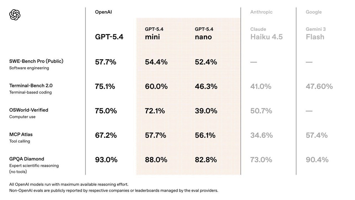OpenAI выпустила GPT-5.4 Mini и Nano — модели, которые дают максимум интеллекта при минимуме затрат: скорость, экономия и мощь🎯 ▌ Что внутри? • 🧠 Mini = почти полный флагман: уровень GPT-5.4, но быстрее и дешевле — идеален для кода, рассуждений и мультимодальных задач • ⚡️ Nano = сверхкомпактный: молниеносный ответ для простых задач и субагентов, где важна скорость, а не глубина • 🖼 Мультимодалка в Mini: текст + изображения + инструменты + контекст до 400K токенов — загружай документацию, спрашивай по сути • 🔌 API-доступ сразу: обе модели уже работают, интегрируй в свои проекты без ожидания очередей ▌ Доступ — здесь и сейчас → API OpenAI ✅ → Mini: текст, изображения, функции, длинный контекст ✅ → Nano: лёгкие задачи, фоновые агенты, массовые запросы ✅ → Гибкое ценообразование: платишь только за нужный уровень интеллекта ✅ ▌ Фишка, которая меняет правила Не нужно выбирать «дешево или качественно». Mini даёт флагманское качество по доступной цене, Nano закрывает фоновые задачи за к