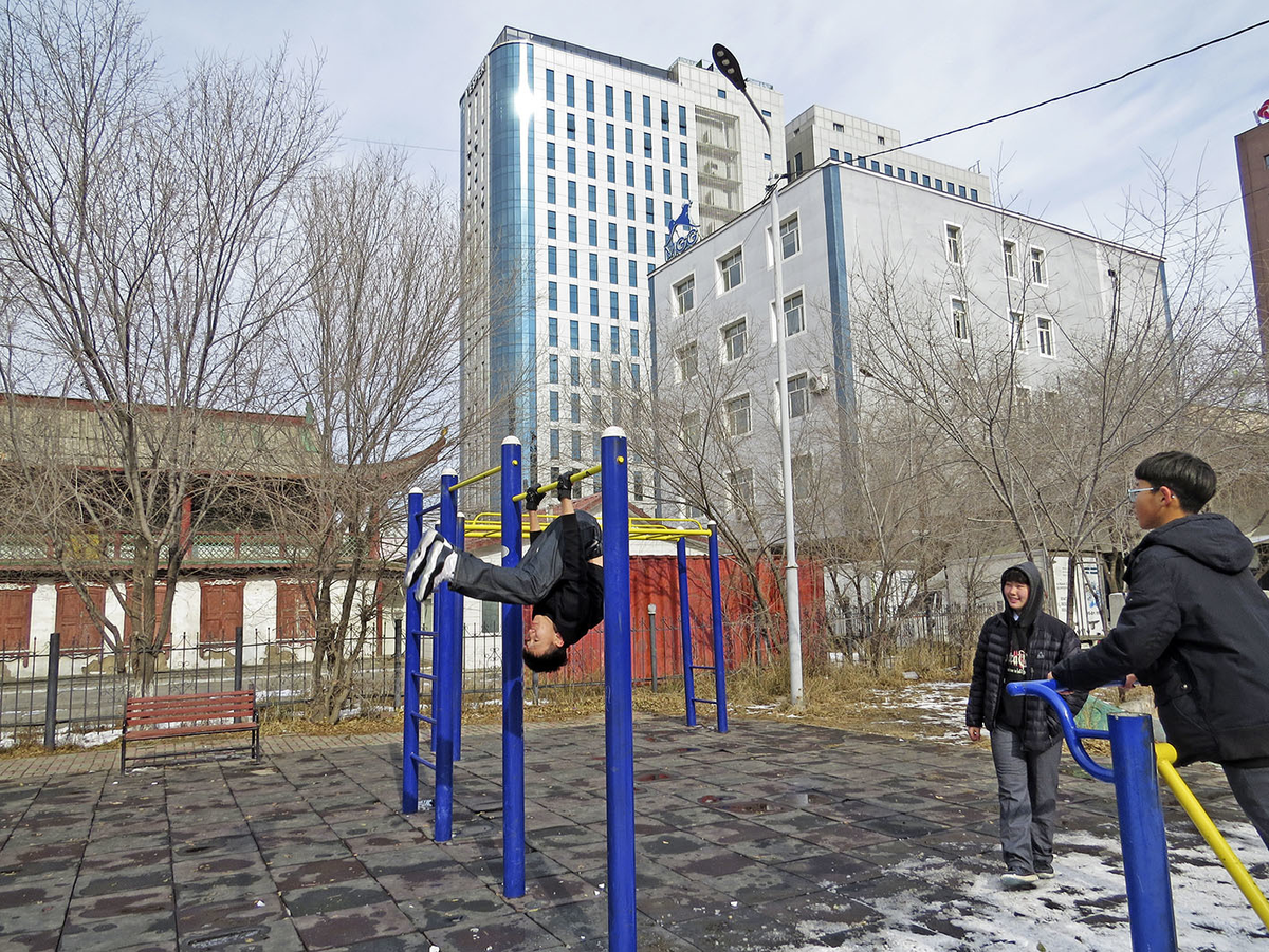 В прошлом всё было иначе: наш монгольский знакомый, тёртый жизнью старый Отгив, которого Наташа прозвала "местным Лимоновым", рассказывал, что его молодость в 1970-80-х прошла в войнах молодёжных банд, порой - не на жизнь, а насмерть. То же происходило и в Улан-Удэ тех лет, но если о тамошних "чуваках и чавах" написано много и даже снимают кино, то о подобном движении у соседей рунету не известно. Отгив говорил нам, что своих лидеров каждая банда узнавала по шапкам особой формы, а "мирные" подростки со всех городских школ платили дань... но всё заканчивалось неизбежным призывом в армию, где дедовщина и круговая "слой за слоем, как рубанком, снимали с нас это всё".