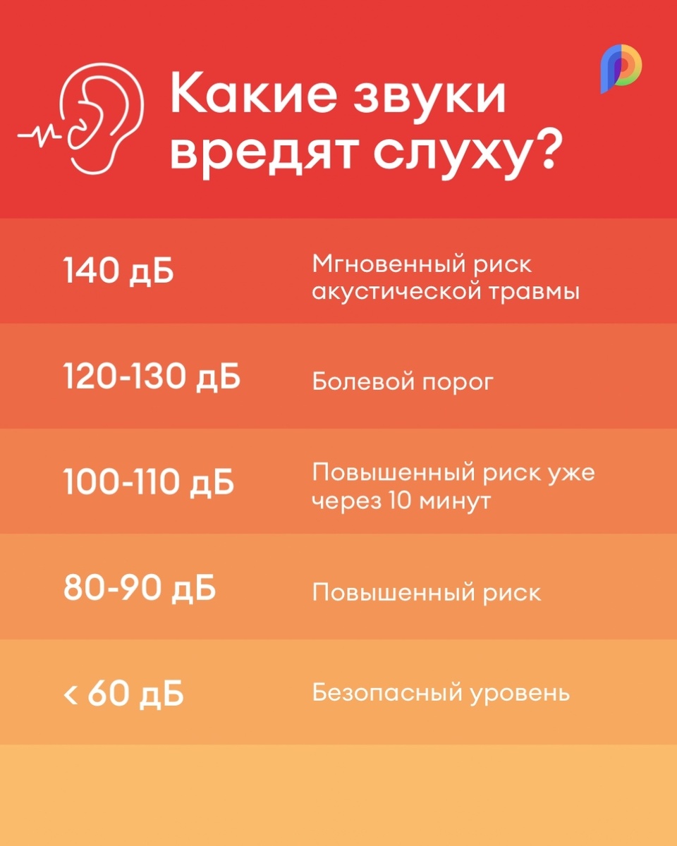 Если после шума появляется звон или заложенность — это сигнал об акустической микротравме. Как правило, ощущения проходят сами через несколько часов. Но череда таких травм может привести к необратимой потере слуха — будьте внимательны.