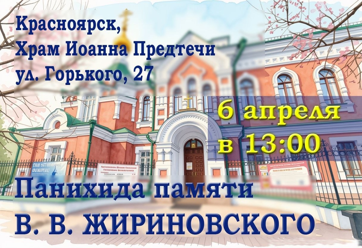 6 апреля в день памяти В.В. Жириновского в храме святого Иоанна Предтечи в Красноярске состоится панихида.