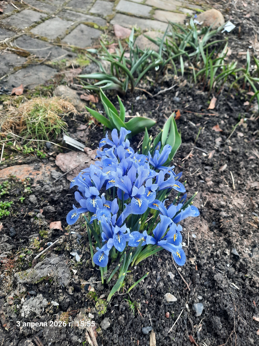 Так уж получилось, что сегодня короткая прогулка получилась. Сразу после приезда я пробежалась по партерной части, пофотографировала чуток. Потом муж хвастался подарком для меня. Тем самым! Потом покажу и расскажу поподробнее! Потом я готовила какую-никакую еду. А уж потом рванула убирать укрытия с розовых кустов. Было не до съемок! Даже на склон не поднялась! Только печеночницы посмотрела. Увы, мои еще не цветут! Глянем, что уже радует цветением! Зацвели иридодиктиумы. Уже массово! Вот синенькие. Крокусы цветут. Сейчас нет солнца, так что бутоны закрыты. Чабрец моховидный. Видите черные пятна? Там камни лежали, державшие укрытия. Буду иметь в виду и вам советую. Иридодиктиум Катарина Ходжкин. Обычно самый первый из семейства сетчатых ирисов зацветает. Теперь у него есть конкурент на большом солнце. Нынче мелковаты цветоносы, но все равно хороши. Здесь зацветают несолько сортов крокусов и прочей мелочи мелколуковичной. Уже показались побеги пиона тонколистного. Хионодокса цветет