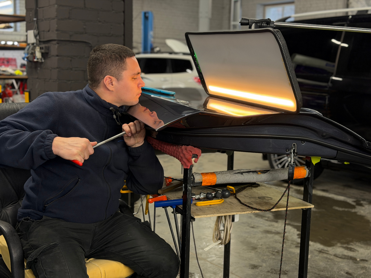 Ремонт вмятин BMW X5. К сожалению, всё чаще мы отвлекаемся на телефоны или бытовые проблемы, когда заправляем или паркуем автомобиль. И сейчас я не намекаю на предложение установить камеры 360, но подумайте об этом, если что! Что касается халатного отношения к заправочному пистолету, оставленному в горловине бака – эта ситуация действительно требует внимания. Вмятина была довольно сложной, растянутой и трудной для ремонта. Как всегда, мы полагались не на везение, а на наш опыт. Работы было много, но она была интересной и принесла удовлетворение. С задачей справились за один день, получив хороший опыт и положительные эмоции от довольного клиента. Что касается других повреждений, то бронеплёнка, хоть и защитила элементы на крыле и бампере, не смогла устоять перед сильной вмятиной на передней двери. Ремонт производился под покрас, но работа не заняла много времени, так как повреждения находились на отрицательной плоскости. В завершение работ детали повторно были забронированы.