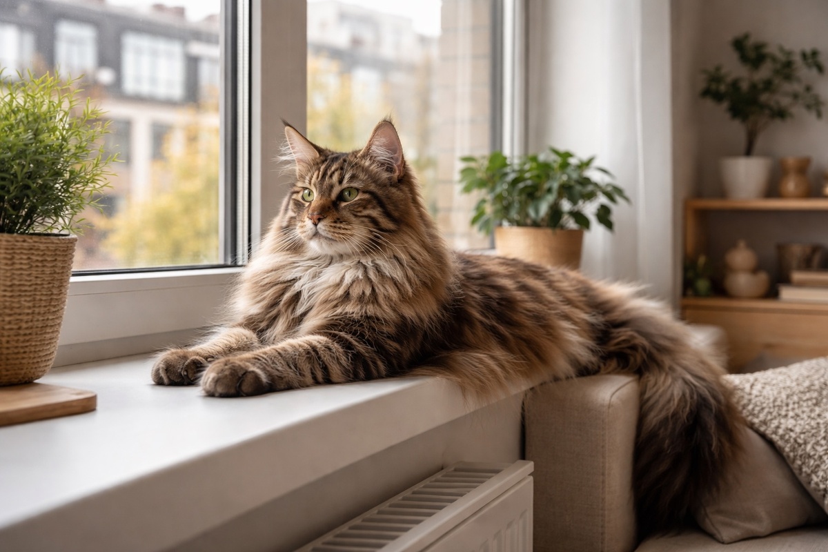 Мейн-кун хорошо адаптируется к жизни в квартире, если её базовые потребности учтены. Основная сложность заключается не в размере жилья, а в организации пространства, питания и ухода.