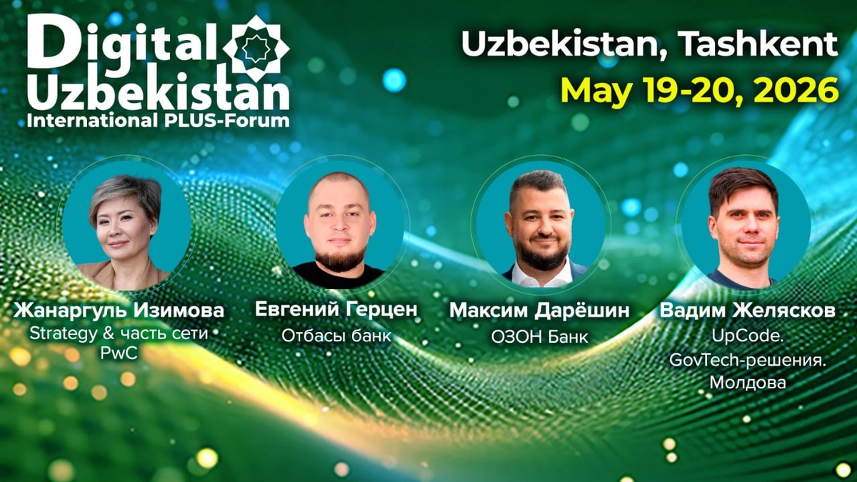 На Международном ПЛАС-Форум Digital Uzbekistan 19-20 мая выступят ведущие эксперты, формирующие повестку в области стратегии, цифровых активов и инновационных решений. Встречайте новых звездных спикеров! 1️⃣ Жанаргуль Изимова, директор, лидер практики стратегического консалтинга финансовых институтов в Евразии, Strategy &, часть сети PwC Эксперт с глобальным взглядом на развитие финансовых институтов. Стратегии роста, трансформация бизнес-моделей и лучшие мировые практики. 2️⃣ Евгений Герцен, управляющий директор по цифровой трансформации, Отбасы банк Топ-менеджер, отвечающий за цифровой апгрейд одного из ключевых социальных банков региона. Опыт внедрения технологий в сегменте с уникальной спецификой. 3️⃣ Максим Дарёшин, руководитель управления сети банкоматов, ОЗОН Банк Эксперт по развитию физической инфраструктуры в цифровом банке. Новый взгляд на ATM-каналы, клиентский опыт и бесшовный сервис. 4️⃣ Вадим Желясков, CEO & co-founder, UpCode. GovTech-решения. Молдова Международный э