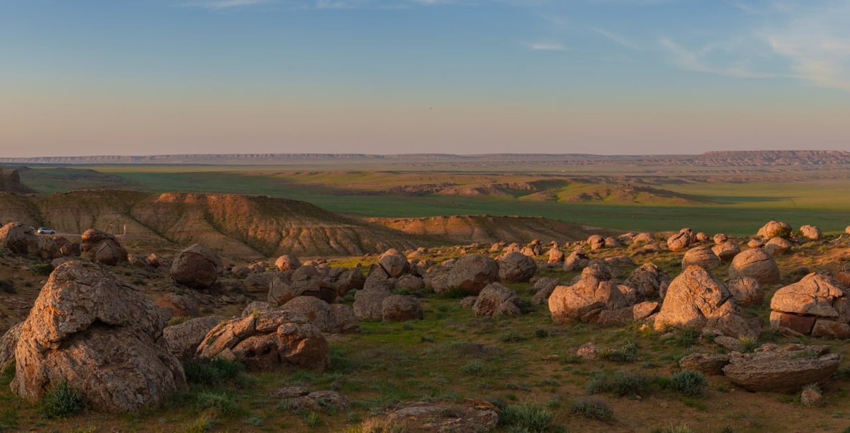 Сухой воздух. И они лежат. Не один, не два. Сотни. Как будто кто-то играл в мячики, а использовал для этого камни. А потом раскидал их и ушёл. Это место – долина Торыш в Казахстане. Когда только подъезжаешь наверх к каменным шарам, то сначала не понимаешь масштаб. Ну, камни, странные, да. А потом подходишь и видишь каменные шары до самого горизонта. Огромные и маленькие, ровные и треснутые, половинки и целые. Когда-то здесь был древний океан Тетис. И на дне его лежали раковины, моллюски, песчинки. Со временем вода стала отступать, перекатывала, уходя камушки, обкатывала их, сверху нарастали слои минералов. Медленно. Ровно. Со всех сторон. Как снежный ком, только в камне. Поэтому форма идеальная. Камень растёт не хаотично, а от центра к краю. Прошло десятки миллионов лет. Вода ушла. Породы поднялись. Всё мягкое вокруг выветрилось, а плотные шары остались лежать на поверхности. Никакой магии, просто геология. И ученое название – конкрециии, от латинского concretio — срастание, сгущен
