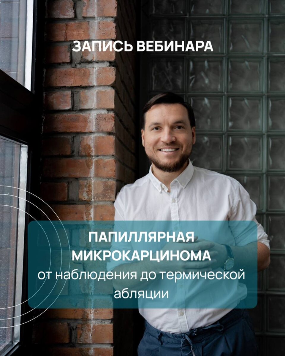 «Папиллярная микрокарцинома: от наблюдения до термической абляции» https://kinescope.io/4zKg9ooypZFr6LFmRBfbzq 🩵 Этот вебинар полезен врачам-эндокринологам, хирургам, специалистам ультразвуковой диагностики, а также пациентам, которые хотят лучше разобраться в современных подходах к лечению малых форм рака щитовидной железы. 🩵 ☝🏼Сегодня при выявлении микрокарциномы возможны разные тактики: наблюдение, хирургическое лечение и термическая абляция как альтернатива операции в определённых клинических ситуациях. На вебинаре мы подробно разобрали, как выглядит микрокарцинома по УЗИ, в каких случаях можно рассматривать наблюдение, когда показано хирургическое лечение и кому может подойти абляция. Включите уведомления 🔔 в моем канале, чтобы не пропустить информацию о новых вебинарах и полезных статьях для врачей и пациентов!