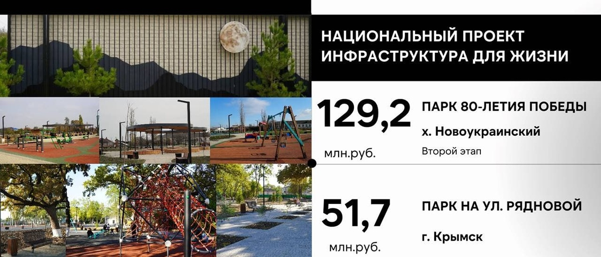 Впервые Крымский район принял участие в национальном проекте по благоустройству общественных территорий в 2017 году. С тех пор в муниципалитете преобразились десятки любимых мест отдыха. В 2025 году по национальному проекту «Инфраструктура для жизни» был построен парк на улице Рядновой г. Крымска, в хуторе Новоукраинском – парк 80-летия Победы в Великой Отечественной войне. Полный текст отчета – в нашем сообществе Вконтакте Подробная информация в 🇷🇺 MAX 📱 ВК 📱 ОК 📱 Дзен 🇷🇺Сайт
