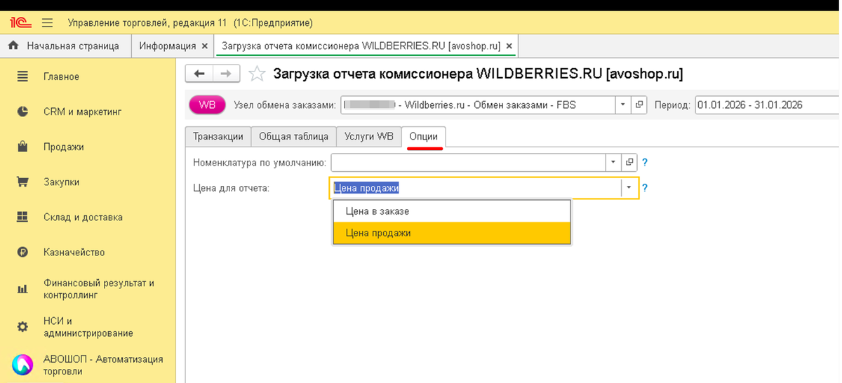 WILDBERRIES - Доработана загрузка отчета комиссионера - добавлена настройка выбора какую цену указывать в отчете - Цену заказа или Цену фактической продажи.