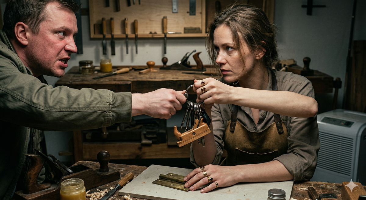 Как только дверь за ним захлопнулась, я бросилась в спальню. Мой чемодан был спрятан под кроватью, за коробками с зимней обувью. Я начала кидать туда вещи. Минимум. Джинсы, пару свитеров, рабочую блузу, инструменты. Мои стамески, завернутые в промасленный холст, заняли половину места. Они были важнее любой одежды.
