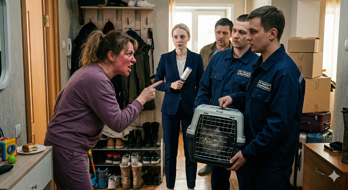 Мужчины из службы перевозки работали быстро и профессионально. Кот был извлечён из-под дивана с помощью специального сачка — он отчаянно мяукал, но против опыта не попрёшь. Его водворили в бокс. Лариса, продолжая выкрикивать что-то о «черством сердце» и «семейных ценностях», подталкивала детей к выходу. Тёма и Вика выглядели даже немного обрадованными — поездка на большой специализированной машине с мигалками казалась им приключением, в отличие от скучного сидения в нашей гостиной.