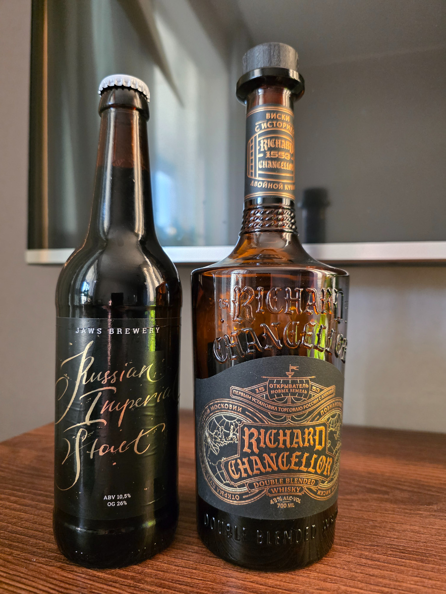 Единственное что отметил для себя это то, что в буквальном смысле запивая один напиток другим есть риск перебить легкий торфяной дымок виски плотной горечью стаута. Я употреблял по отдельности с небольшими (минут 5) перерывами. Еще есть один лайфхак – в большой стакан (рокс) наливаете драм виски, пьете его неспешно в свое удовольствие, а после того, как выпили виски в этот же стакан наливаем наш «Russian Imperial Stout».