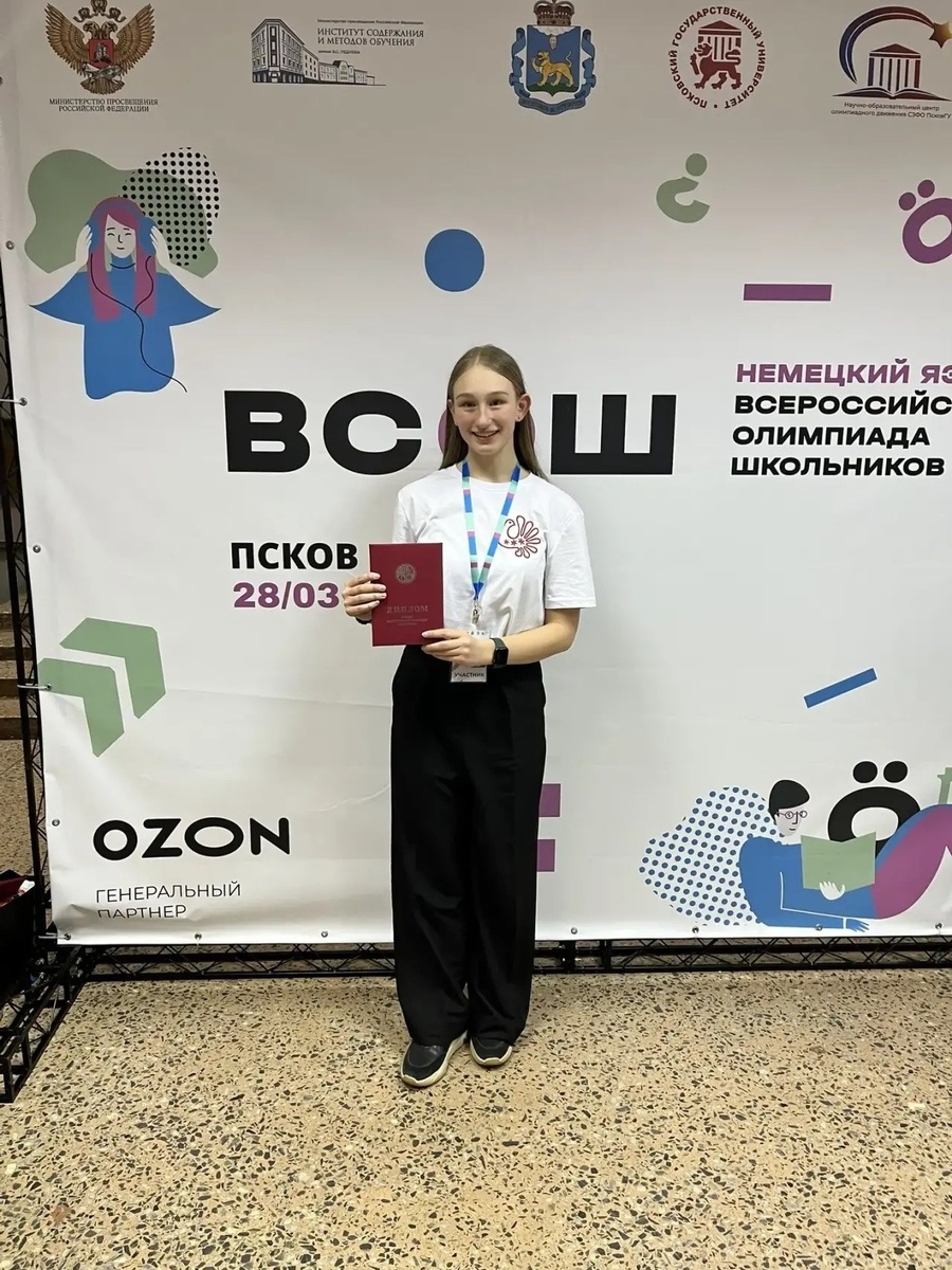 Ученица 11 класса Женской гуманитарной гимназии стала призером финала Всероссийской олимпиады школьников по немецкому! Наставник Варвары - Наталия Павловна Сухарева, учитель немецкого языка, кандидат филологических наук. По впечатлениям гимназистки, Всероссийская олимпиада - это не только испытания, волнение, ожидание результатов, поддержка наставников, радость от побед, но и «особая атмосфера, которая объединяет участников со всей страны, среди которых ребята, разделяющие твои увлечения, ценности и интересы, а также готовые поддержать в любую минуту!» Финал по немецкому проходил с 28 марта по 2 апреля в Пскове. Участники показали мастерство во владении письменным и устным немецким языком. Между турами олимпиады школьники посетили Псково-Печерский монастырь и несколько экскурсий по Пскову. Источник: Вологодский институт ра Речь ВКонтакте | Речь в МАКС | Речь в ОК | Речь в Дзене | 35MEDIA в МАКС