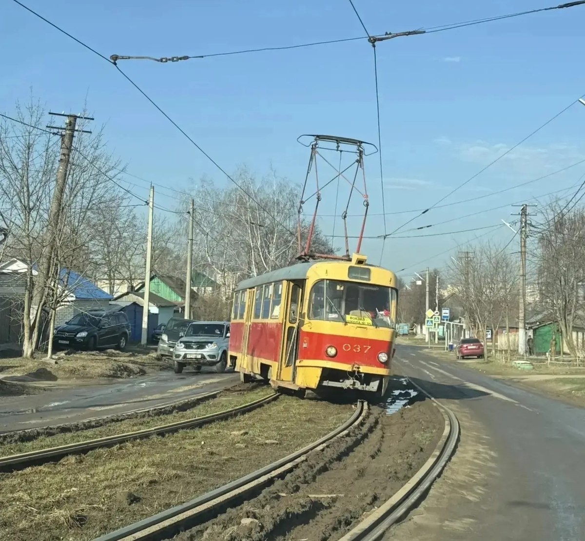 Фотофакт: Сегодня утром на улице Грузовой сошел с рельсов трамвай. Причина неизвестна.