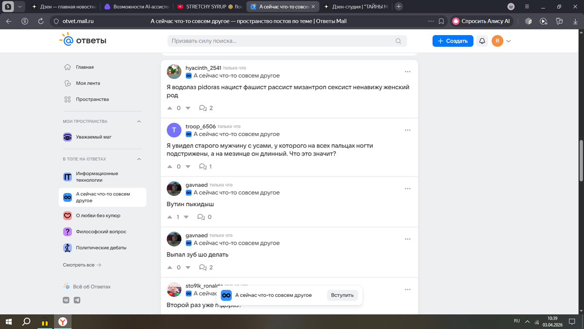 твориться полный беспредел и безнаказанность в майл ру в вопросах администрация сайта не банит тролей с украины