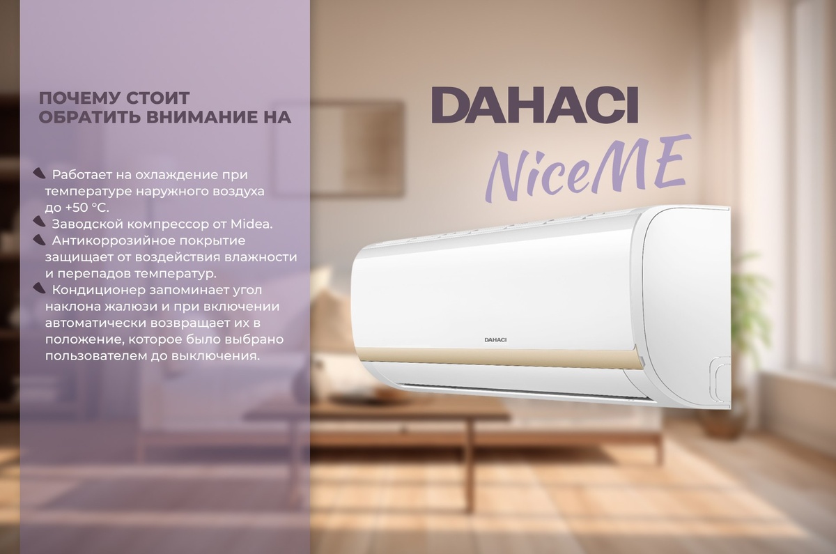 ✍️ DAHACI NiceME = Завод Midea = Суперцена! Cплит-система DAHACI NiceME — это именно то «золотое сечение», где инверторные технологии встречаются с прагматичным подходом к бюджету. В карточке обозначили основные преимущества модели ⬆ DAHACI NiceME можно заказать: 1️⃣ у персонального менеджера 2️⃣ на klimatprof.online 3️⃣ в приложении KLIMATPROF.ONLINE