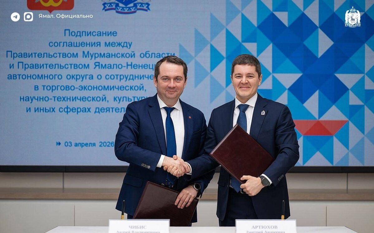 🤝 Соглашение о сотрудничестве в торгово-экономической, научно-технической, социальной сферах подписали губернаторы Дмитрий Артюхов и Андрей Чибис. – Объединяя усилия, мы исходим из простого факта: и Ямал, и Мурманская область – это опорные промышленные форпосты страны в Арктике, где формируется значительная доля экономики макрорегиона. Наше географическое положение диктует нам одни и те же вызовы. Это и необходимость модернизации инфраструктуры в городах и посёлках, реализация промышленных и логистических проектов, важных для экономики и благополучия всей страны, и, конечно, общие вызовы в борьбе за человеческий капитал – когда условия жизни должны соответствовать масштабу стратегических задач. У нас гораздо больше точек соприкосновения, чем различий. Объединяя наши усилия и делясь опытом друг с другом, мы сможем ещё более эффективно реагировать на эти вызовы, и более того, опережать их, задавая стандарты для всей Арктической зоны, – подчеркнул Дмитрий Артюхов. Согласно документу,