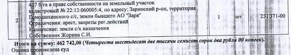 сельскохозяйственного производства, кадастровый № 22:13:060005:4, общая площадь 31590895 кв.м., адрес: Алтайский край, Заринский район, территория Гоношихинского сельсовета, земли бывшего АО «Заря». Начальная цена 231 371 руб. 00 коп. (Жорина С.И., запреты на совершение регистрационных действий, арест) (269). Канал: Госземля Алтайский край Область: край Алтайский Заринский район Район: территория Гоношихинского сельсовета Населенный пункт: земли бывшего АО «Заря». Локация: Смотреть на карте ВРИ: Обеспечение сельскохозяйственного производства Кадастровый номер: 22:13:060005:4 Кадастровая стоимость: - Вид сделки: Продажа Площадь: 31590895 м² Начальная цена: 231371.00 руб. Дата завершения: 29.04.2026 Подробнее: ГИС ТОРГИ #госземля #земляотгосударства #земля #земельныйучасток #земельныеторги #торги #аукцион #продажаземли #продажа #алтайскийкрай