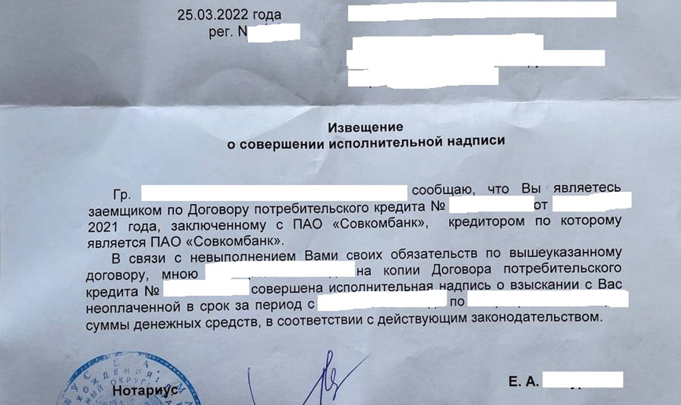 Если Вы столкнулись со взысканием с Вас задолженности по кредитному договору по исполнительной надписи нотариуса, тогда данная статья будет для Вас полезной. Также если Вам необходимо отменить исполнительную надпись и прекратить производство у приставов, свяжитесь со мной по данным контактам: https://t.me/TimofeevNA93, Эл. почта: timofeevna93@yandex.ru. Исполнительная надпись нотариуса представляет собой специальную отметку на кредитном договоре, которую производит нотариус по просьбе банка. В свою очередь, банк обращается к нотариусу за данной услугой, так как заемщик по кредитному договору не вносит платежи по кредиту. После проставления данной отметки, документы можно сразу же передавать в службу судебных приставов для исполнения. То есть, банку не обязательно обращаться в суд, банк просто через нотариуса оформляет исполнительную надпись и сразу приступает к процессу взыскания. Исполнительная надпись приравнена законодателем к исполнительному документу и судебный пристав будет взыск