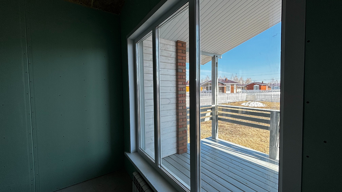 Стены. Зашиты влагостойким гипсокартоном по всему дому. Ровная поверхность под финишную отделку (обои, краска, плитка). Пол. Стяжка залита по всем помещениям. Ровное основание под ламинат, плитку или паркет. Тёплый пол. Трубы уложены под стяжкой по всему дому. Коллекторная группа установлена в тамбуре. Остаётся подключить к котлу - и система работает. Вентиляция. Вытяжные каналы: тамбур, кухня-гостиная, санузел.