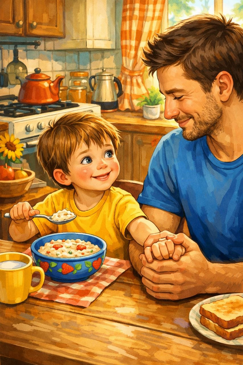 Я посмотрел на него. Маленький. Волосы торчат в разные стороны, на щеке след от подушки. Он ел кашу и смотрел на меня серьёзно, как взрослый.