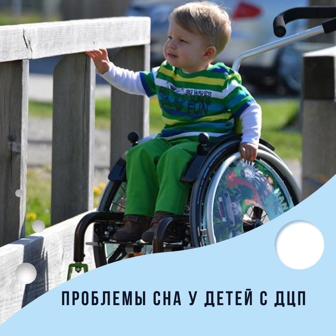 Сон — важнейшая часть восстановления и роста организма. Но у детей с ДЦП проблемы со сном встречаются часто и могут серьезно влиять на общее состояние, поведение и самочувствие. Почему так происходит и что можно сделать? 🔹 Возможные причины нарушений сна: 🧠 Неврологические особенности Повышенный мышечный тонус, судороги, непроизвольные движения тела могут мешать ребёнку заснуть и не давать спать глубоко. 💤 Нарушение циркадных ритмов Организм может «не чувствовать» разницы между днем и ночью из-за нарушенной нейросигнализации. 🧸 Физический дискомфорт Неподходящая поза, боль в суставах, спазмы, пролежни, перегрев или переохлаждение. 🧠 Сенсорная перегрузка или тревожность Усталость от стимулов за день и внутреннее напряжение могут проявляться в виде беспокойного сна или трудностей с засыпанием. 🔹 Что может помочь? 🌿 Режим и предсказуемость ✔️ Чёткое время отхода ко сну ✔️ Ритуалы: тёплая ванна, тишина, мягкий свет ✔️ Ограничение экранов за 1–2 часа до сна 🛏 Комфортная поза и подде