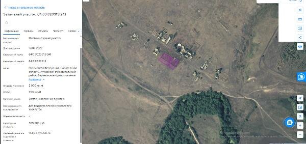 Название: Земельный участок площадью 2000 кв.м., с кадастровым номером 64:03:020313:241, расположенный по адресу: Российская Федерация