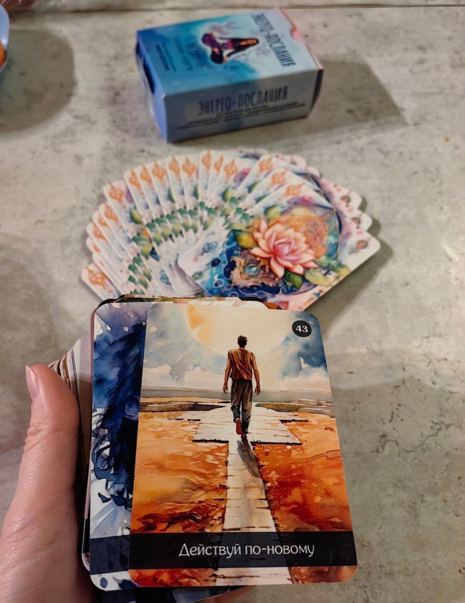 ⚡️ Вы можете получить ответ на любую вашу ситуацию : ✔️Финансы и работа ✔️Эмоциональное состояние ✔️Отношения ✔️Здоровье и энергия Вы поймете, какая практика подойдет под решение вашей ситуации и получите краткое руководство. Сможете увидеть направление решения и получить мотивацию ⚡️ ⚡️Или вы можете просто без конкретного запроса получить карту-послание на апрель, почувствовать, о чем он для вас. ✔️Изображения на картах заряжены, просто смотрите - и уже идет настройка на нужное состояние Чтобы получить карту, напишите любой комментарий 💎 🔔Если делаете репост в сторис, пишите ,вышлю вам Аудио-медитацию Активации энергии. ( если у вас нет сторис в телеграм,то можете в инсте или вк репостнуть ) 💟Сами карты можете заказать у меня @Energolog Колода карт-энергопосланий (80карт с практиками + инструкция с техниками работы), полезно и для личной работы и для помогающих специалистов. 1400 р с доставкой , отправляем в ближайший к вам пункт Ozon