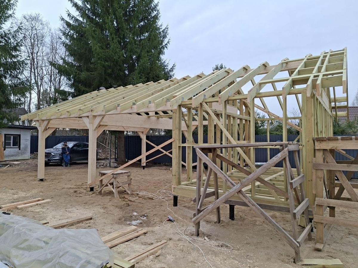 Уважаемые подписчики, к одному из наших проектов домов, в едином ансамбле строим авто навес с хоз