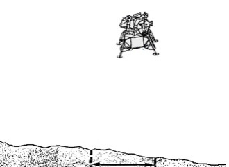 Модуль не падает с ускорением, потому что сила давления вертикальной части реактивной струи на поверхность (синяя стрелка) полностью компенсирует вес модуля во время посадки. Назовем это "реактивной пружиной", которая "одинаково давит" и на модуль и на поверхность: