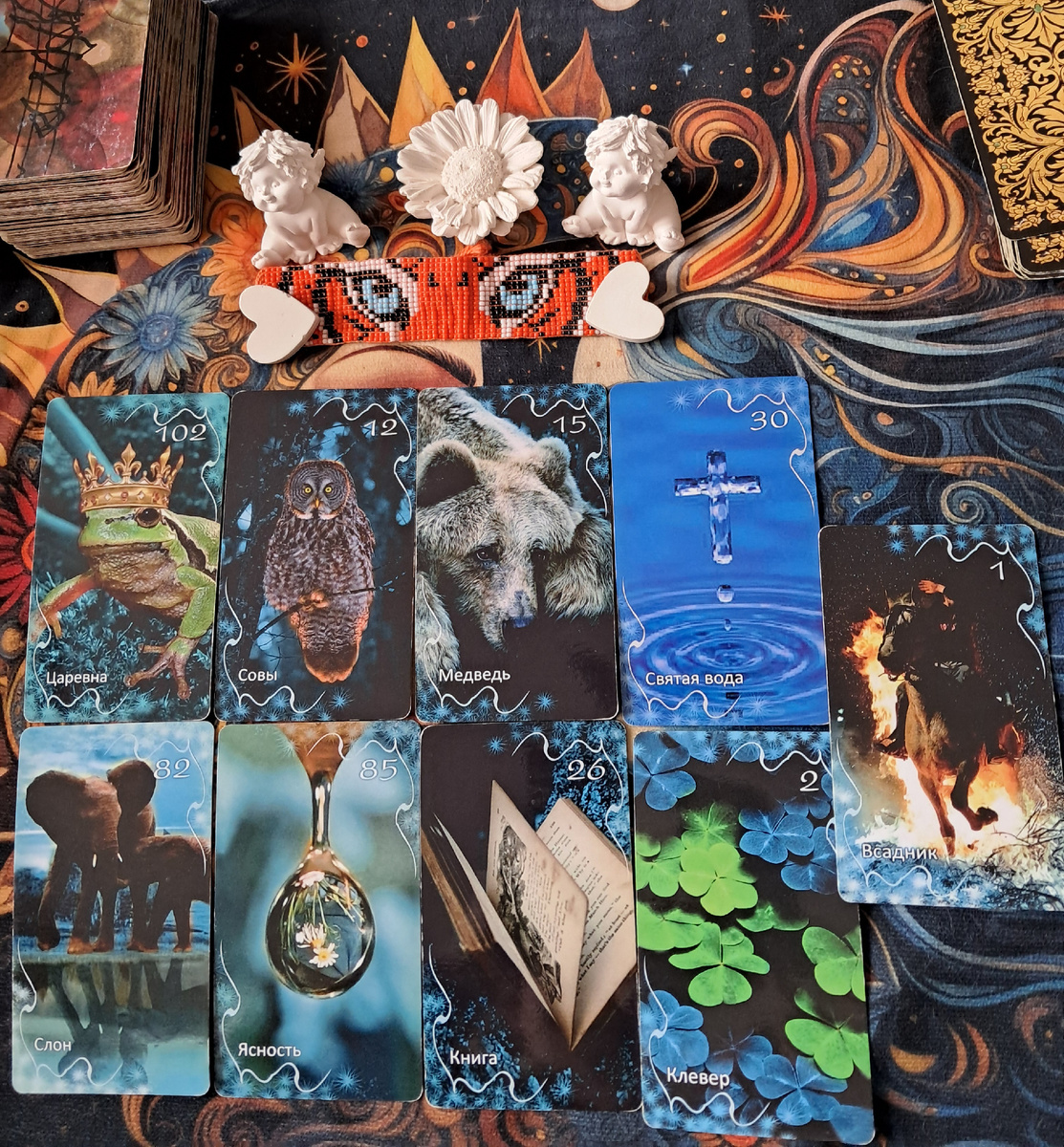 · Царевна + Совы + Медведь — вы сейчас находитесь в состоянии «спящей царевны»: интуиция обострена, но вы ждете. Медведь говорит, что ресурсы и защита уже рядом, но скрыты.