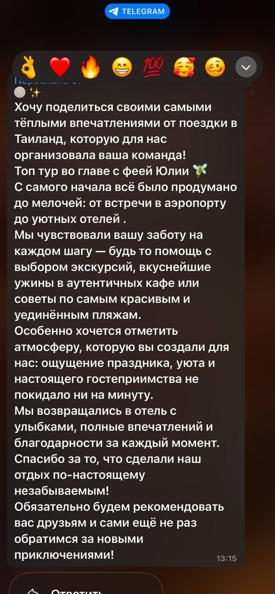 ✨😊 🇹🇭На этот раз - привет из солнечного Таиланда☀️🌊 🌴Ребята делятся впечатлениями, а мы читаем и улыбаемся…😍💛 потому что в этих словах - отдых, о котором мечтают🌺🌴 🐠Всё сложилось как нужно: комфорт с первых минут, уютные отели 🏨, красивые пляжи без толп 🏝️☀️ и те самые места, куда обычно не доходят случайные туристы🌾 💛Такие путешествия остаются не только на фото📸… они остаются внутри - тёплым послевкусием, к которому хочется возвращаться снова и снова💫🌊 😊Мы бережно храним эти моменты и делимся ими с вами💛 #топтурист 🏖️🌺 🌴Мечтаете о таком же отдыхе?✈️🌞 Напишите нам - всё организуем💛💌 📞 +7 918 999-02-47 📱Top_Tour 📱ВКонтакте
