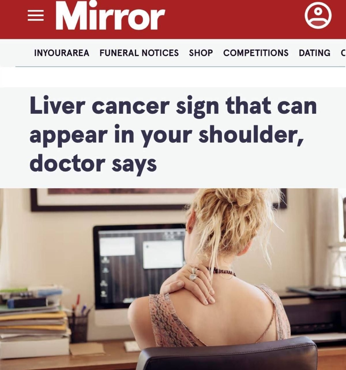 Боль в правом плече или лопатке часто списывают на «продуло» или усталость. Но в редких случаях это может быть сигналом более серьёзной проблемы — например, Рак печени. 🧠 Как это связано? Печень находится прямо под диафрагмой и связана с нервными путями, которые «отдают» в правое плечо и лопатку. Когда орган увеличивается или воспаляется, возникает Отражённая боль — человек чувствует дискомфорт не там, где источник проблемы. 📌 Почему это опасно: 🔸 сама печень почти «не болит» 🔸 заболевание может долго протекать без явных симптомов 🔸 первые сигналы легко спутать с безобидными причинами 👀 На что обратить внимание: 🔹 постоянная или повторяющаяся боль в правом плече 🔹 ощущение тяжести в правом подреберье 🔹 слабость, снижение аппетита 🔹 необъяснимая потеря веса 💡 Важно: в подавляющем большинстве случаев боль в плече — это всё-таки мышцы или суставы, а не онкология. Но если симптом сохраняется без очевидной причины — лучше провериться. 🩺 Что сделать: ✔️ обратиться к врачу ✔