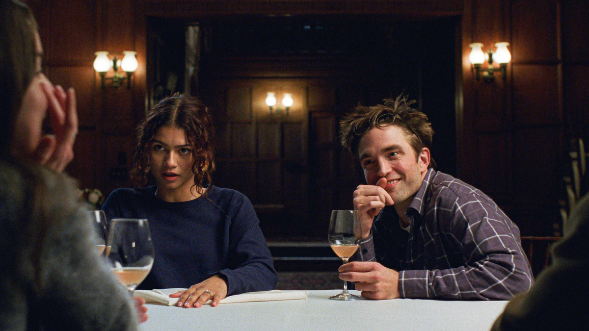 Самое обидное, что стресс подталкивает Чарли посмотреть в зеркало и на самого себя, и там тоже есть потенциал для разочарования. Зендея (как обычно) играет фигуру ускользающую, слегка загадочную, открытую для интерпретаций. Паттинсон же предельно конкретен. В очках, с непослушной копной волос он выглядит как типичный ромкомовский британец, но если долго не отводить взгляда, то за этим фасадом начинают проступать довольно отталкивающие комплексы и неврозы. Хороший пример — первая же сцена «Драмы», хрестоматийное знакомство в кофейне, где Чарли балансирует между Хью Грантом и героем сериала «Ты» (ближе к последнему). Паттинсон выступает в лихорадочной модальности, которая ему так хорошо удается и которую подхватывает сам фильм, снятый как бы в небрежной манере, с обилием крупных планов, мелко, иногда посреди реплики порезанный и озвученный болезненным саундтреком Дэниэла Пембертона, на котором поскрипывают какие-то дудочки.