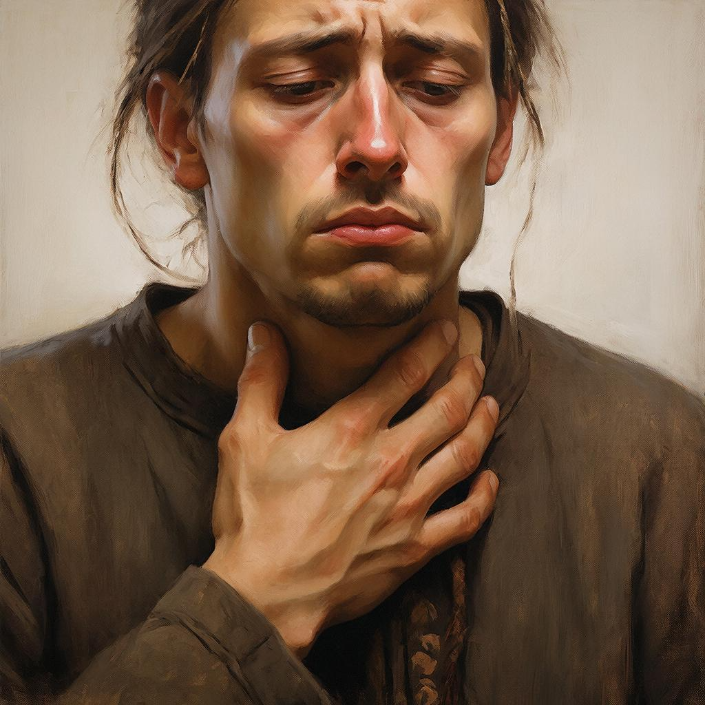 - Невыносимая боль в горле с одной стороны. Это не просто першение или дискомфорт при глотании. Боль носит пульсирующий, раздирающий характер, отдает в ухо или челюсть. Человек часто мечется, не находя покоя.