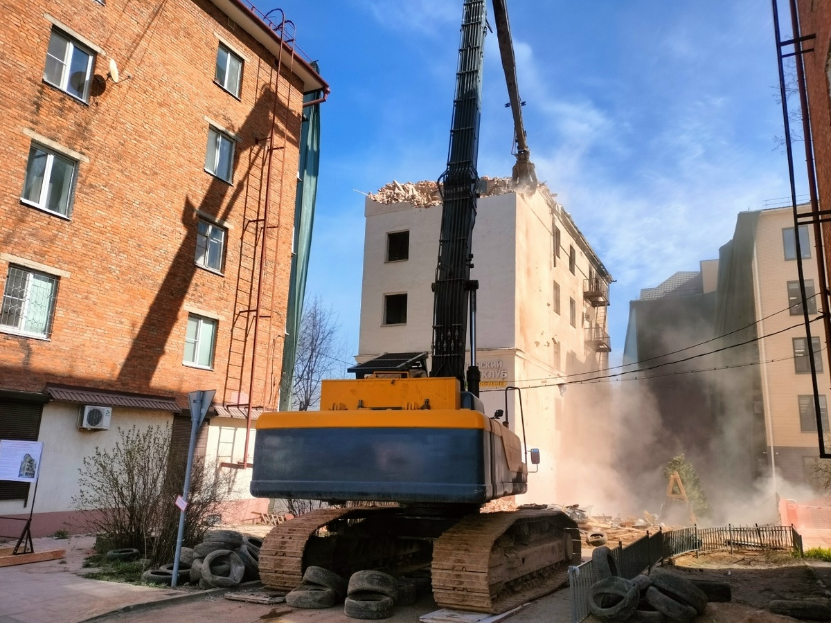 Подрядчик приступил к сносу постройки В Смоленске начался демонтаж одного из самых известных аварийных домов — №6 по улице Коненкова. В пятницу утром к работе приступили рабочие с гигантскими гидроножницами, которые начали крушить стены старого здания. Зону работ заранее обезопасили: территорию оцепили, а фасады соседних домов укрыли защитной сеткой. Само строение было полностью очищено от мебели и подготовлено к сносу. Весь комплекс работ по сносу, вывозу мусора и восстановлению земельного покрова обойдётся городскому бюджету в 5,9 миллиона рублей. Этот дом был построен в 1937 году и когда-то принадлежал Областной инспекции исправительных трудовых учреждений НКВД. Здание сильно пострадало во время войны, но было восстановлено и до последнего времени использовалось как жилое. Его визитной карточкой было необычное овальное окно в надстройке, которое теперь останется только на фотографиях.