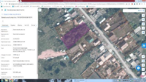 Название: Земельный участок с кадастровым номером 74:30:0104038:1074 площадь 1000 по адресу Российская Федерация, Челябинская область, г