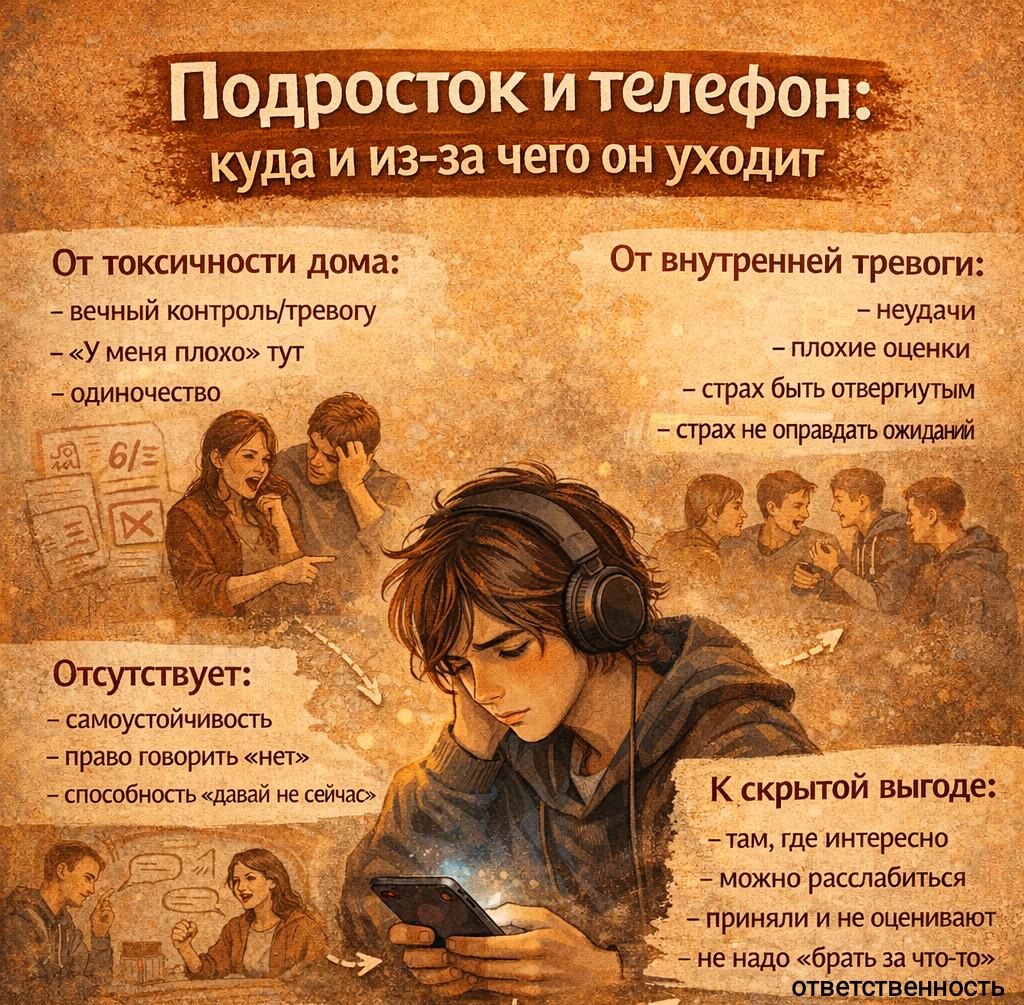 💬 Подросток не выбирает телефон вместо жизни. Он выбирает его вместо той жизни, в которой ему сейчас слишком тяжело быть собой.