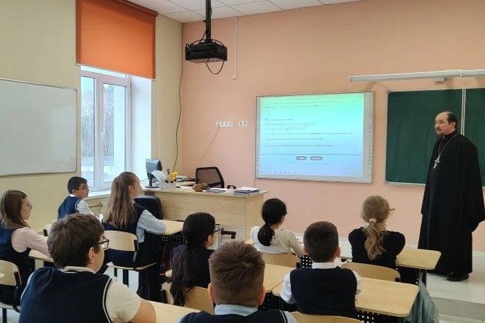 2 апреля 2026 года в новом корпусе школы № 4 мкрн. Рекинцо г. Солнечногорска в рамках акции «Задай вопрос священнику» прошла серия встреч учащихся со священнослужителем. Мероприятие продолжило работу, начатую 31 марта в Лицее № 8 г. Солнечногорска. Темой обсуждения стало целомудрие и пути его достижения. Встречи провёл заместитель благочинного церквей Солнечногорского округа, настоятель Знаменского храма в Голубом иерей Тихон Беляев. Всего состоялось три беседы с разными классами. Первые две встречи – с 6-м и 7-м классами – длились по 20 минут каждая. В таком формате священник ответил на актуальные вопросы ребят, рассказал об основных понятиях целомудрия и важности уважения к себе и окружающим. Третья встреча, с 8-м классом, заняла целый урок (40 минут) и сопровождалась презентацией, адаптированной для старших подростков. Иерей Тихон подробно объяснил, что слово «целомудрие» складывается из понятий «целый» и «мудрый» – это целостная личность, когда разум, чувства и поступки человека не