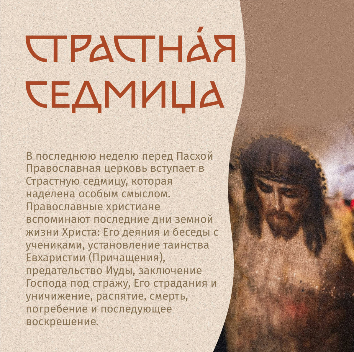 В последнюю неделю перед Пасхой Православная церковь вступает в Страстную седмицу, которая наделена особым смыслом.